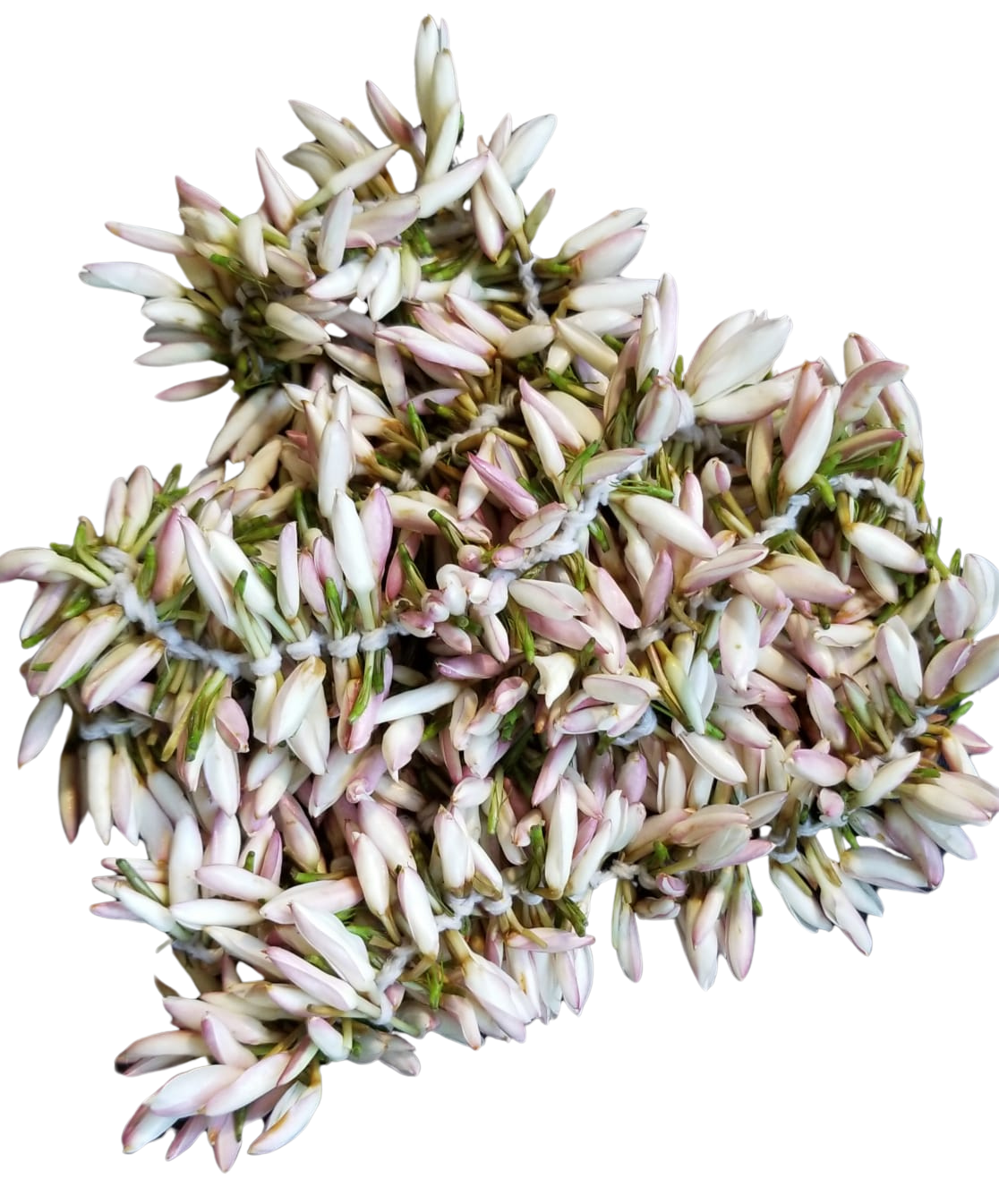 Experience the captivating scent and visual allure of freshly handcrafted Jasmine (Fresh) String, a fragrant floral embellishment that exudes elegance and serenity for any occasion. With its enchanting aroma and symbolic significance, Jasmine, known